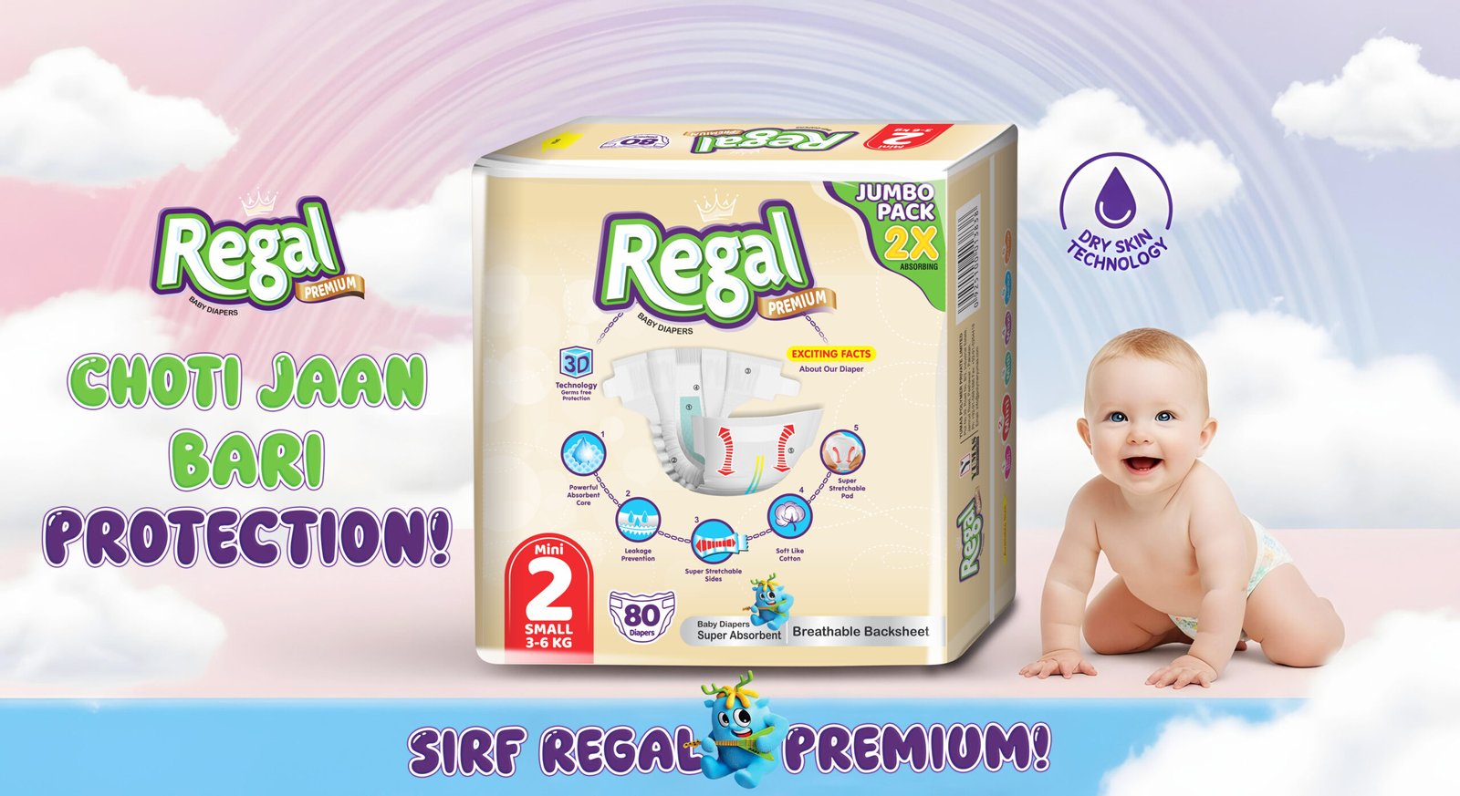 Proudly crafted in Pakistan with international standards, Regal Baby Diapers has become a premium choice for families who seek only the best for their children. With softness, advanced absorbency, and a perfect fit, Regal continues to redefine baby care, one diaper at a time.